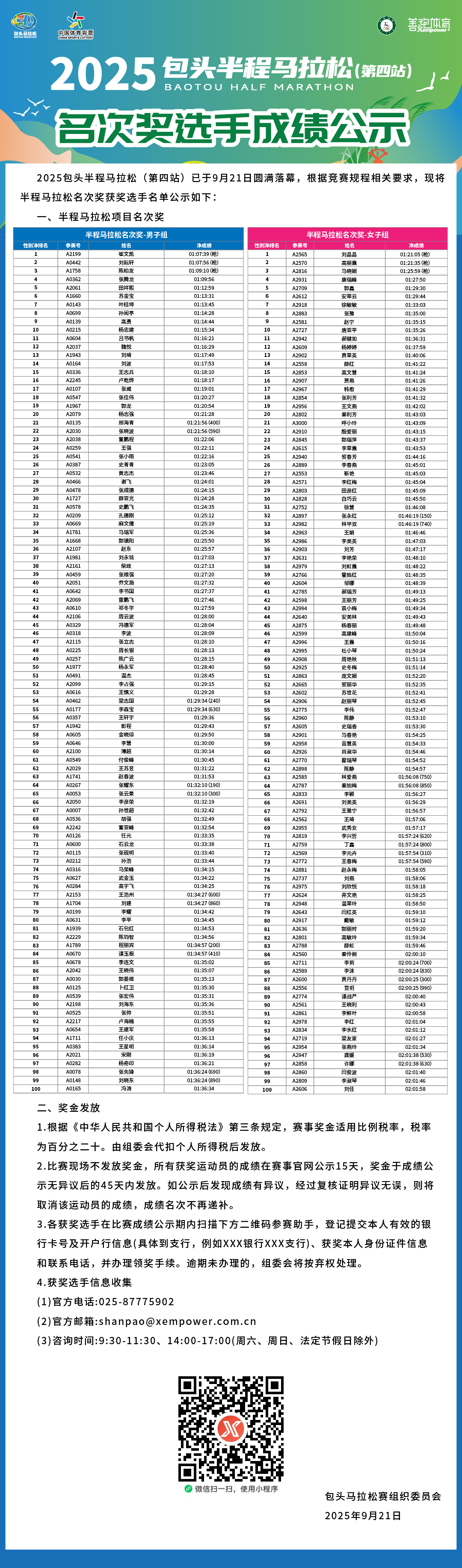 2025包头半程马拉松(第四站)获奖选手名单公示